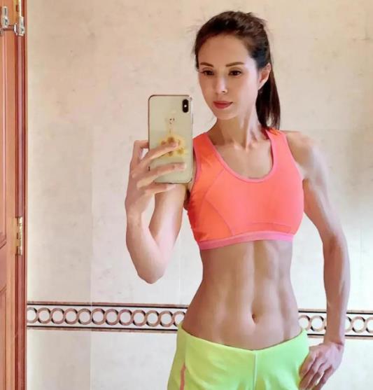 她的背部线条和腹肌也是让人羡慕得不行。她经常在社交平台上分享怎么运动、怎么吃,真是一应俱全。