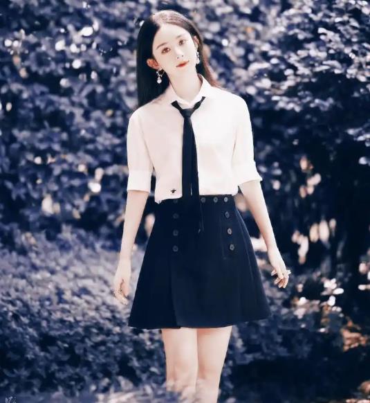 赵丽颖穿上那套“校服”,简直美得让人心动,白衬衫配上黑色百褶裙,再扎个小领带,看起来特别清新,还有点甜,真是让人眼前一亮。